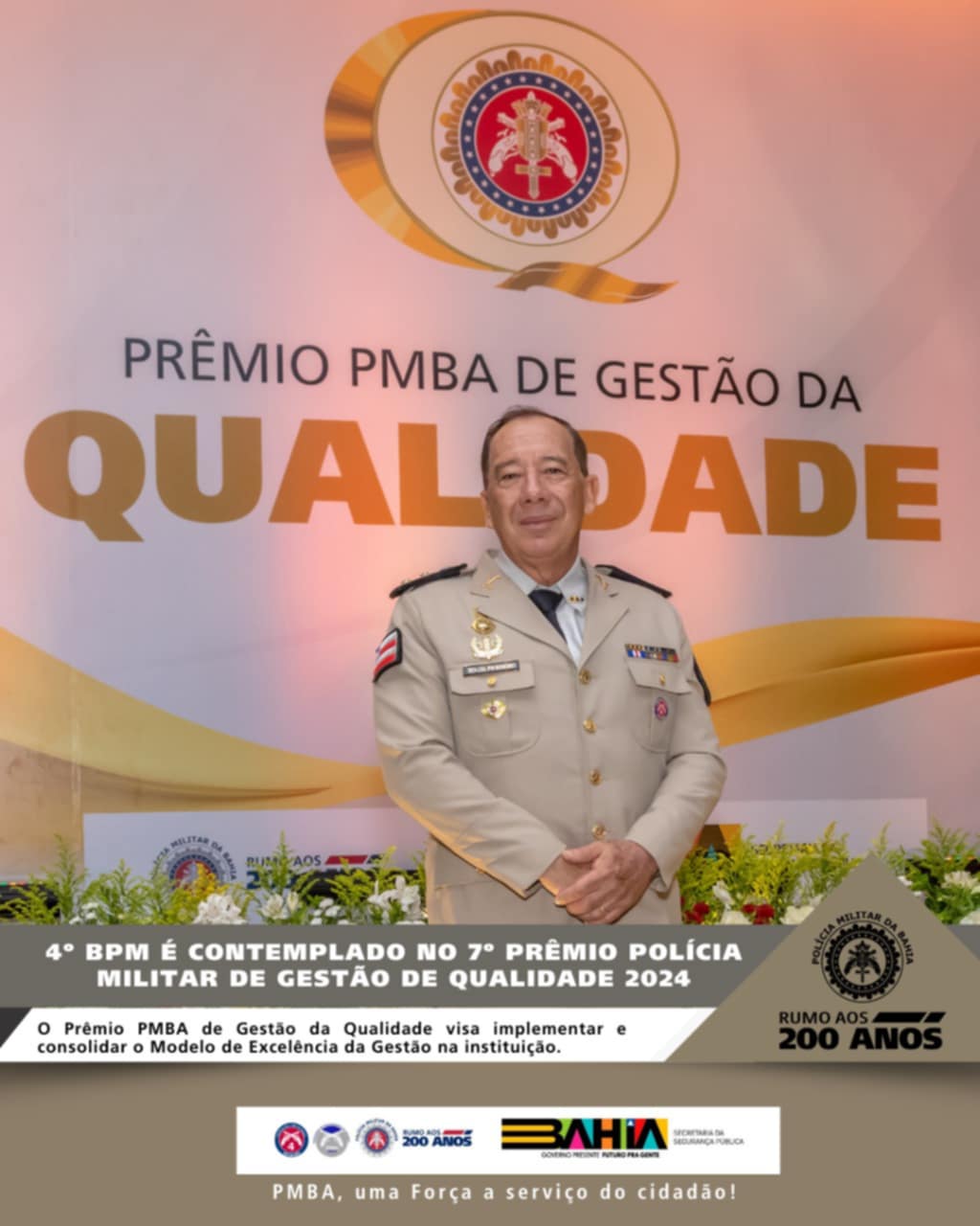 O 4º Batalhão de Polícia Militar (BPM), sediado na cidade de Alagoinhas (BA), foi contemplado no 7º Prêmio PMBA de Gestão da Qualidade , na tarde da última segunda-feira (09), uma iniciativa que reafirma o compromisso da Polícia Militar da Bahia com a excelência na prestação de serviços à sociedade.