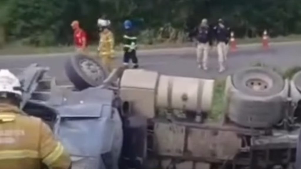 O acidente foi próximo ao local, onde uma pessoa foi encontrada morta na madrugada da última sexta-feira, após ser atropelada, nas proximidades de um posto de combustíveis, perto do povoado de Geari.