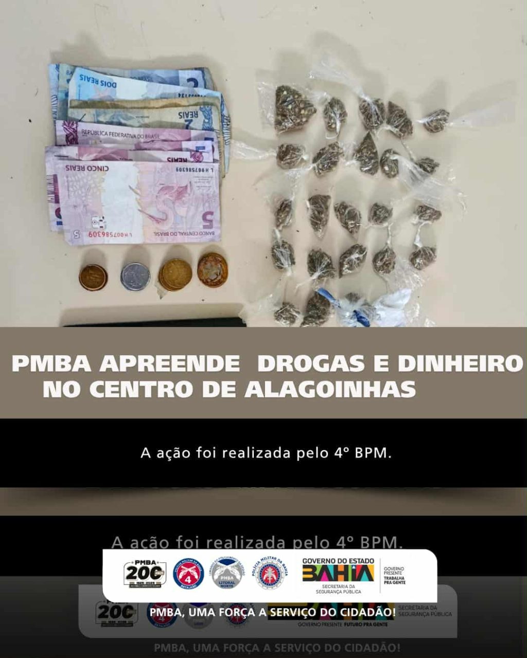 Policiais do 4º Batalhão de Polícia Militar (BPM), prenderam dois suspeitos de tráfico de drogas no Centro, em Alagoinhas (BA), no início da noite de sábado, 18 de outubro.