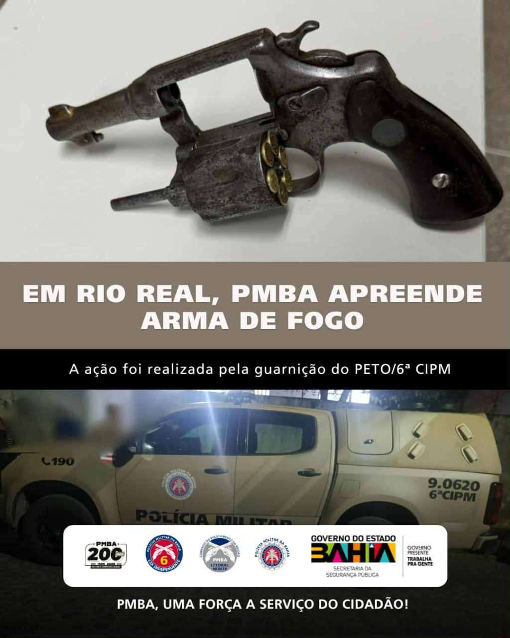 Na noite de sexta-feira, 17 de outubro, militares do Pelotão de Emprego Tático e Operacional (PETO) da 6ª CIPM, apreenderam arma, após confronto com um criminoso, no município de Rio Real (BA).