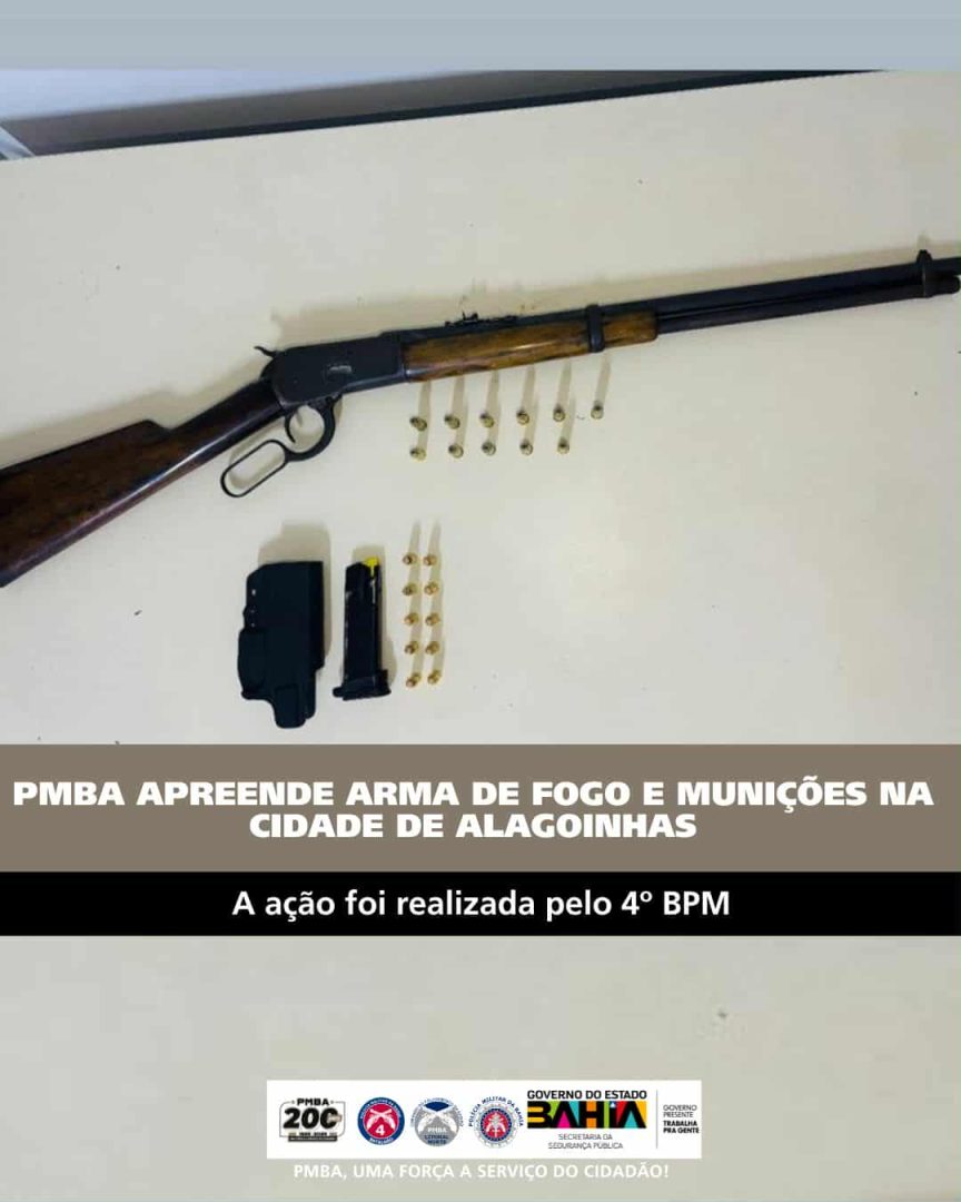 Policiais Militares do 4º BPM apreenderam munições de arma de fogo, um carregador de pistola 9mm e uma arma de fogo, na noite de sexta-feira, 14 de novembro, na cidade de Alagoinhas (BA).