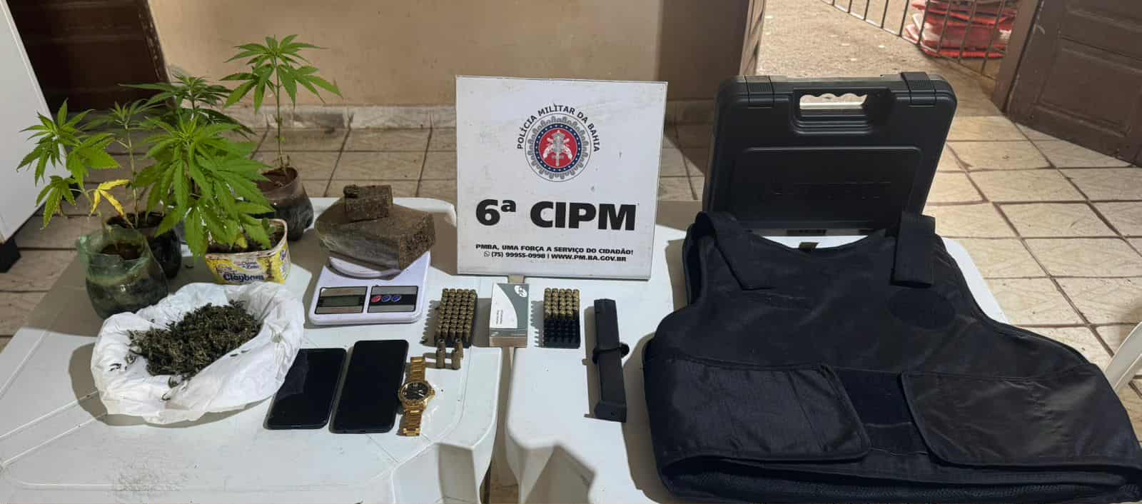 Os agentes de segurança revidaram, mas os criminosos conseguiram fugir, deixando para trás em um imóvel, 50 munições de calibre 380, 29 munições de calibre 9mm, quatro (04) munições de calibre 45, um (01) carregador alongado de 9mm, cinco (05) mudas de maconha, 685 gramas de maconha prensada, 38 gramas de maconha solta, um (01) colete balístico marca CBC, uma (01) maleta de marca Taurus, dois aparelhos celulares, um (01) relógio marca Nobosi, uma carteira de identidade e uma (01) balança de precisão.