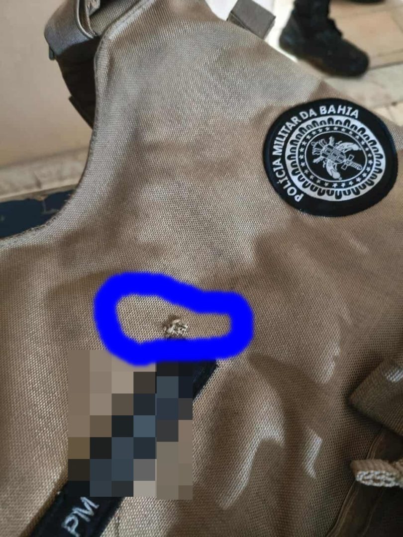 Um policial militar foi baleado e salvo pelo colete antibalístico que usava, na noite de quinta-feira, 20 de novembro, durante uma ocorrência na cidade de Olindina (BA).