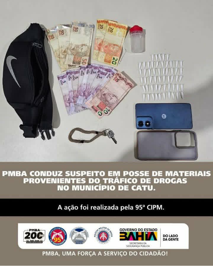 Na noite de sexta-feira, 6 de fevereiro, policiais militares da 95ª CIPM, prenderam um homem por tráfico de drogas, no município de Catu (BA).