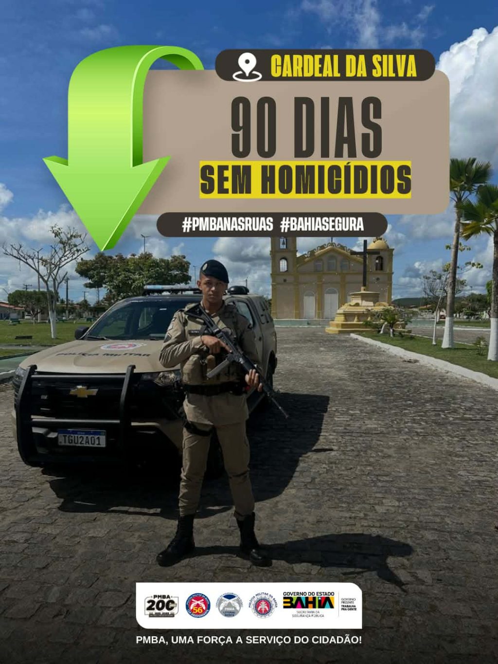 Com ações integradas, ostensivas e de inteligência das Polícias Militar e Civil, Cardeal da Silva, município localizado a 64 km, do polo regional Alagoinhas e pertencente ao Território de Identidade do Litoral Norte e Agreste Baiano, alcançou a marca de 90 dias sem ocorrências de crimes violentos letais intencionais (CVLI), na sexta-feira, 20 de fevereiro.