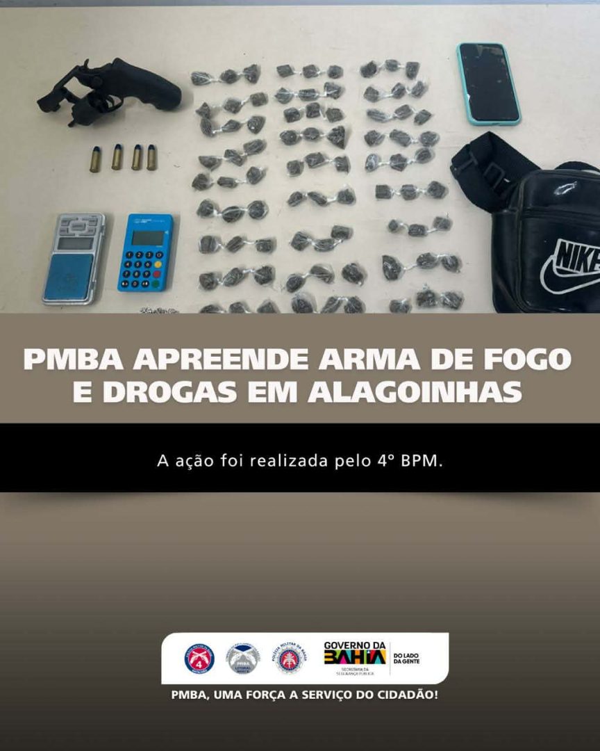 No início da tarde de terça-feira, 10 de março, policiais militares do 4º BPM apreenderam uma arma de fogo e entorpecentes no bairro Alagoinhas Velha, na cidade de Alagoinhas (BA).
