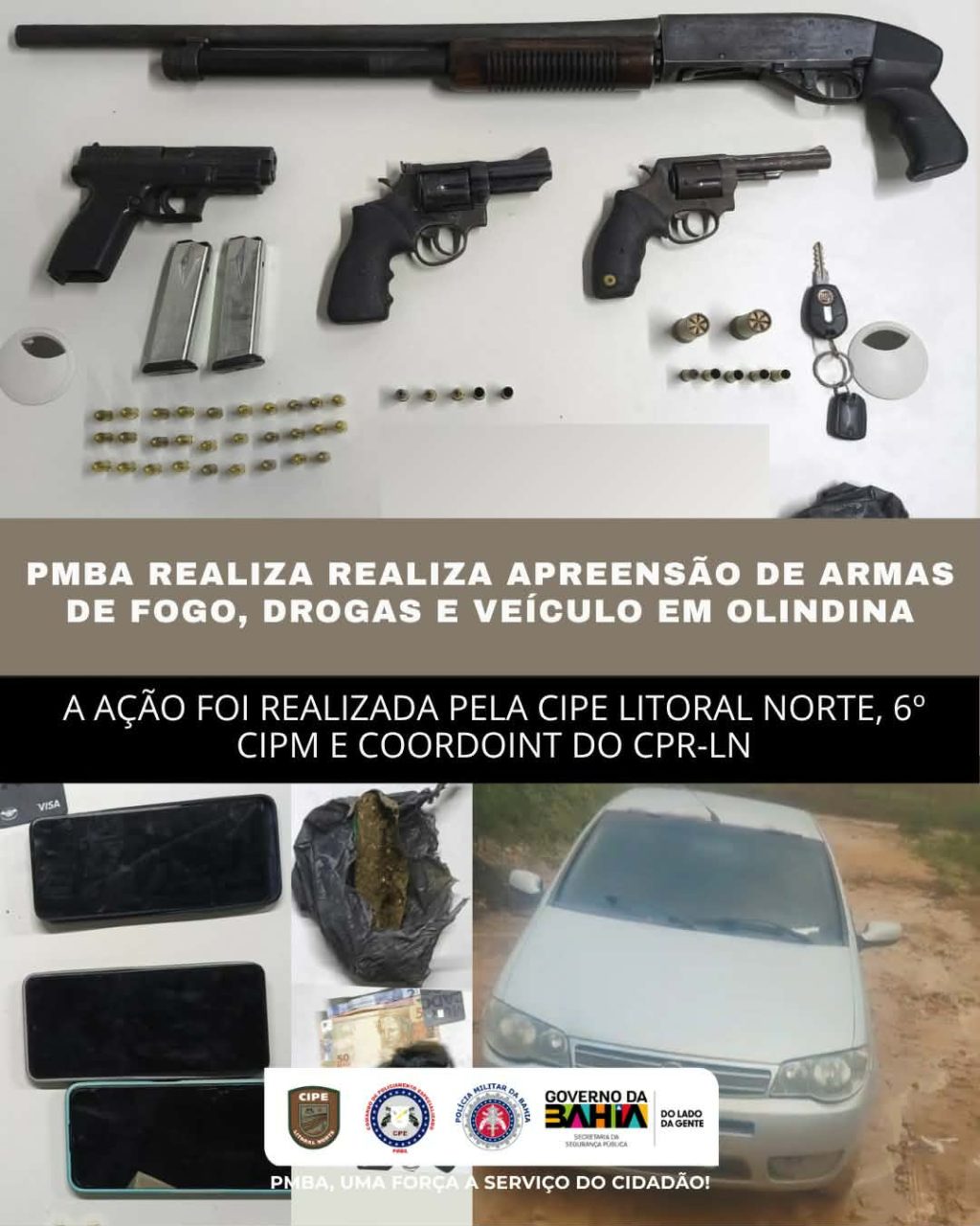 Uma operação realizada por equipes da CIPE/Litoral Norte, 6ª Companhia Independente de Polícia Militar (CIPM) e Coordenação de Operações de Inteligência do Comando de Policiamento Regional do Litoral Norte (CPRLN), resultou na morte de quatro suspeitos e na localização de armas, munições, drogas e veículo roubado, na manhã de segunda-feira, 30 de março, na zona rural de Olindina, município localizado no Território do Litoral Norte e Agreste Baiano e a 96 km de Alagoinhas.