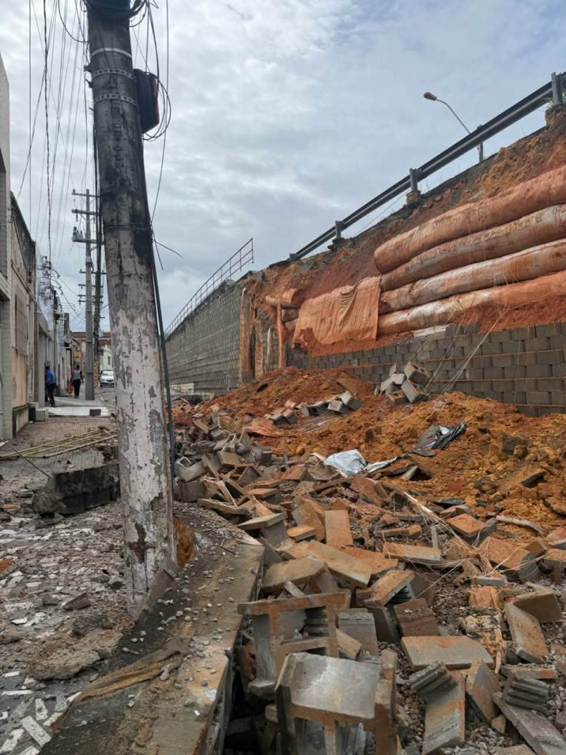 O viaduto da Rua do Catu em Alagoinhas, foi interditado provisoriamente após o desmoronamento parcial de sua contenção lateral em abril de 2024, causado por fortes chuvas.
