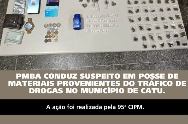 2 min read Destaque Minha Bahia Polícia Policiais da 95ª CIPM apreendem drogas e prendem homem suspeito de tráfico em Catu Domingo, 18 de janeiro de 2026, da Redação- Luciano Reis Notícias, às 22h58. Por...