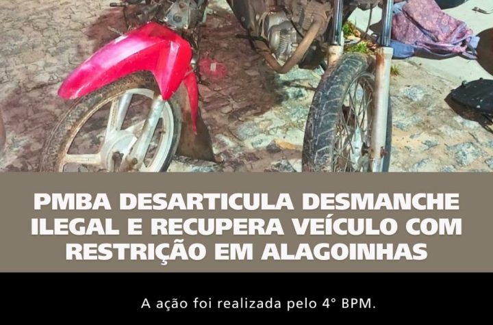 2 min read Alagoinhas Destaque Polícia Policiais do 4º BPM estouram desmanche de motos no bairro Mangalô, em Alagoinhas Domingo, 22 de fevereiro de 2026, da Redação- Luciano Reis Notícias, às 23h50. Por...
